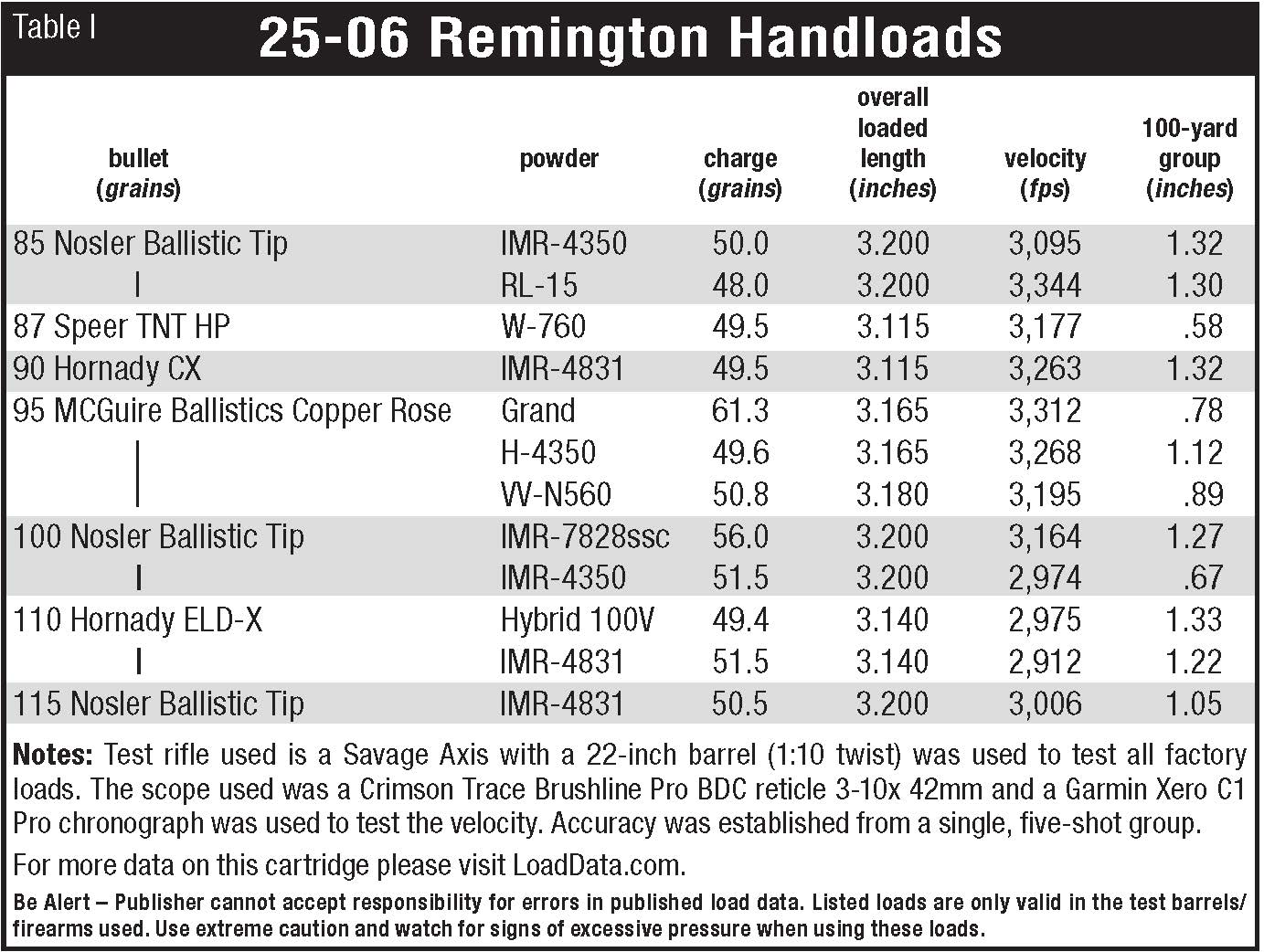 As for factory ammunition, I felt the rifle performed well for the setup. Still, of course, we must explore the wonderful world of handloading or we would be leaving potential outstanding groups out there as well as the full potential of the rifle. I came up with ten different offerings to try out from an 85-grain bullet up to a 115-grain. All the handloads were done with Nosler 25-06 head stamp brass and Federal 210 primer set to have two thousand below flush. All brass was fire-formed before starting the test, then full-length resized using a Hornady die along with a Hornady bullet seating die with the MicroJust seating stem for precision seating depth.